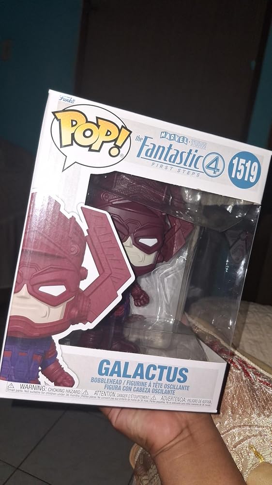 | The packaged figure features approximate box dimensions of 6.5 inches in height, 5.5 inches in width, and 4.5 inches in depth, reflecting its Super Pop! classification. These dimensions allow the figure to stand out visually while remaining compatible with standard Funko Super protective cases. The window display box is designed to showcase Galactus clearly while protecting it from dust and damage. Its size makes it an impressive centerpiece without overwhelming display space. |