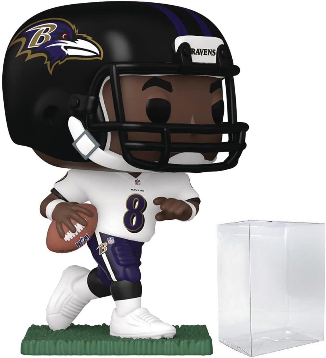This Funko Pop! collectible presents Lamar Jackson wearing his recognizable Baltimore Ravens away uniform, making it an excellent choice for sports fans and collectors.