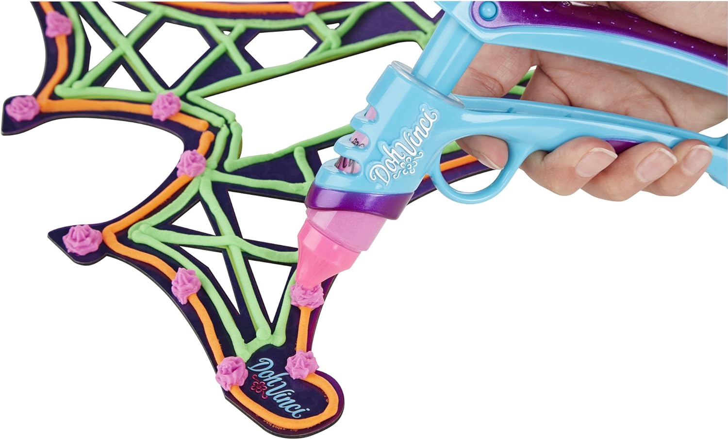 Hasbro invites you to design in 3D with the DohVinci Flower Tower Kit. This set includes 4 Deco Pop tubes, a Styler, and a design tip—everything you need to decorate a stunning tower filled with vibrant flowers and photo frames for your favorite memories. Creating beautiful designs is easy: just aim, squeeze, and let your creativity flow. Your artwork will harden overnight, so you can proudly display it for years to come. Let your imagination come to life in colorful 3D with the Flower Tower Kit.