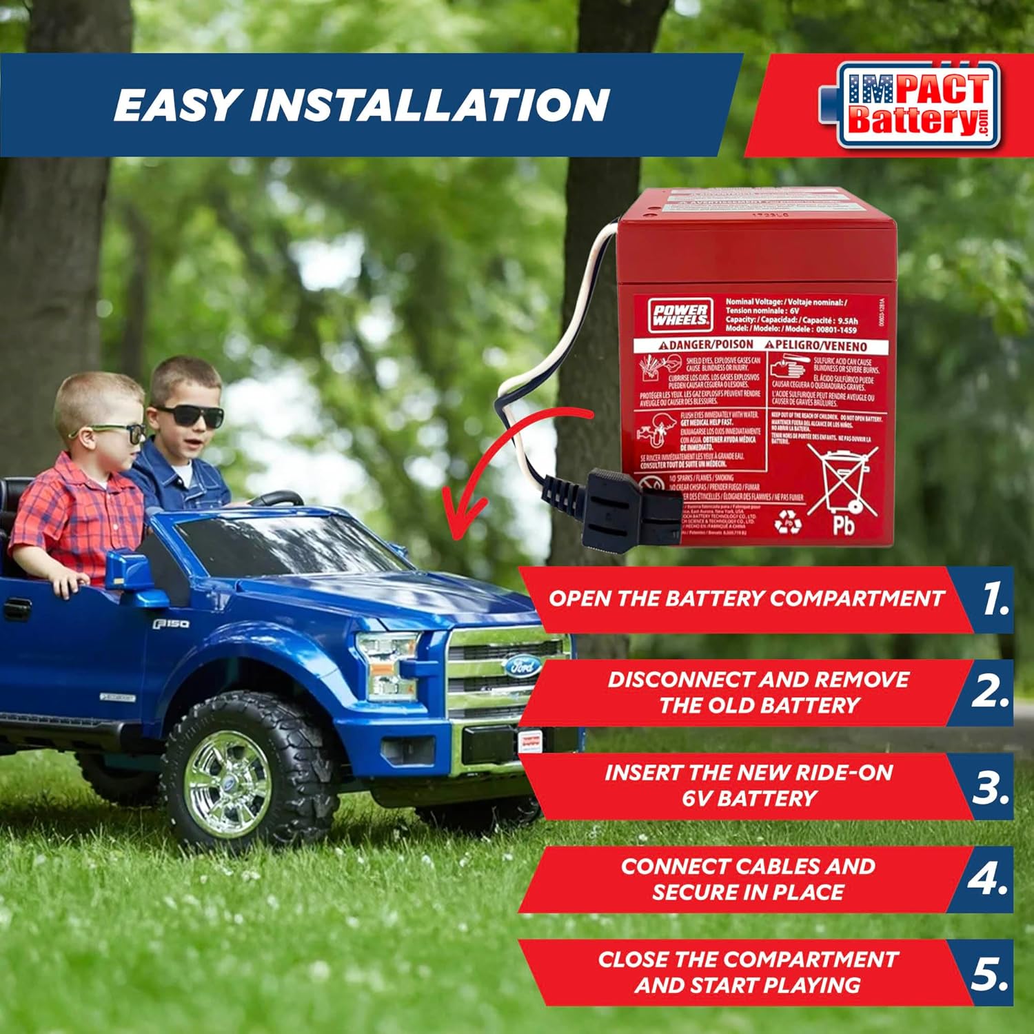 Crafted to withstand active play, this battery is built with strong materials to endure tough conditions, delivering reliable performance and enhancing the longevity of your child's beloved ride-on toy.